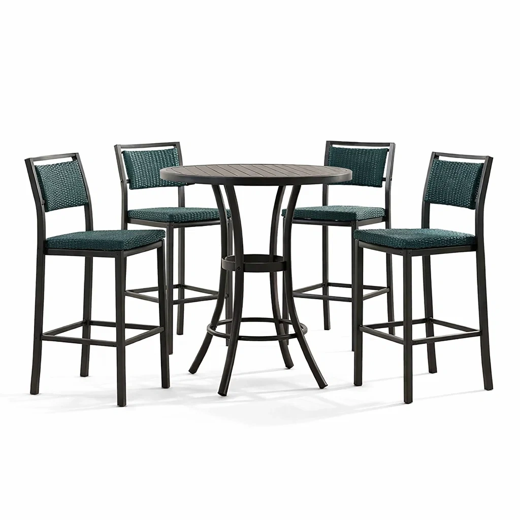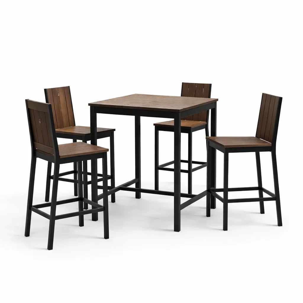 Ensemble de bar extérieur en métal et bois composite avec 4 chaises