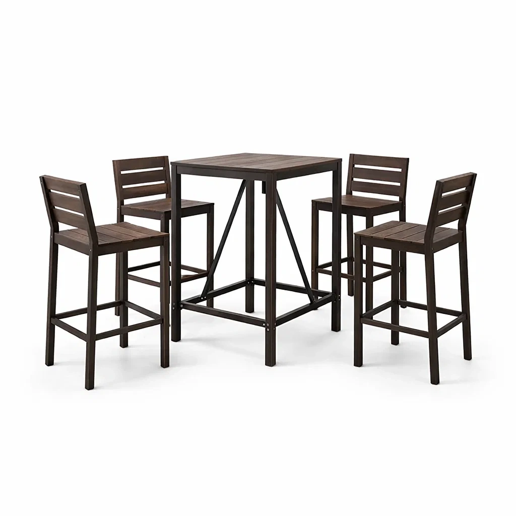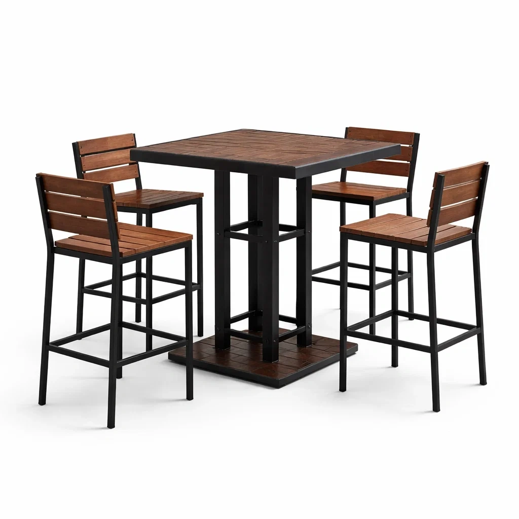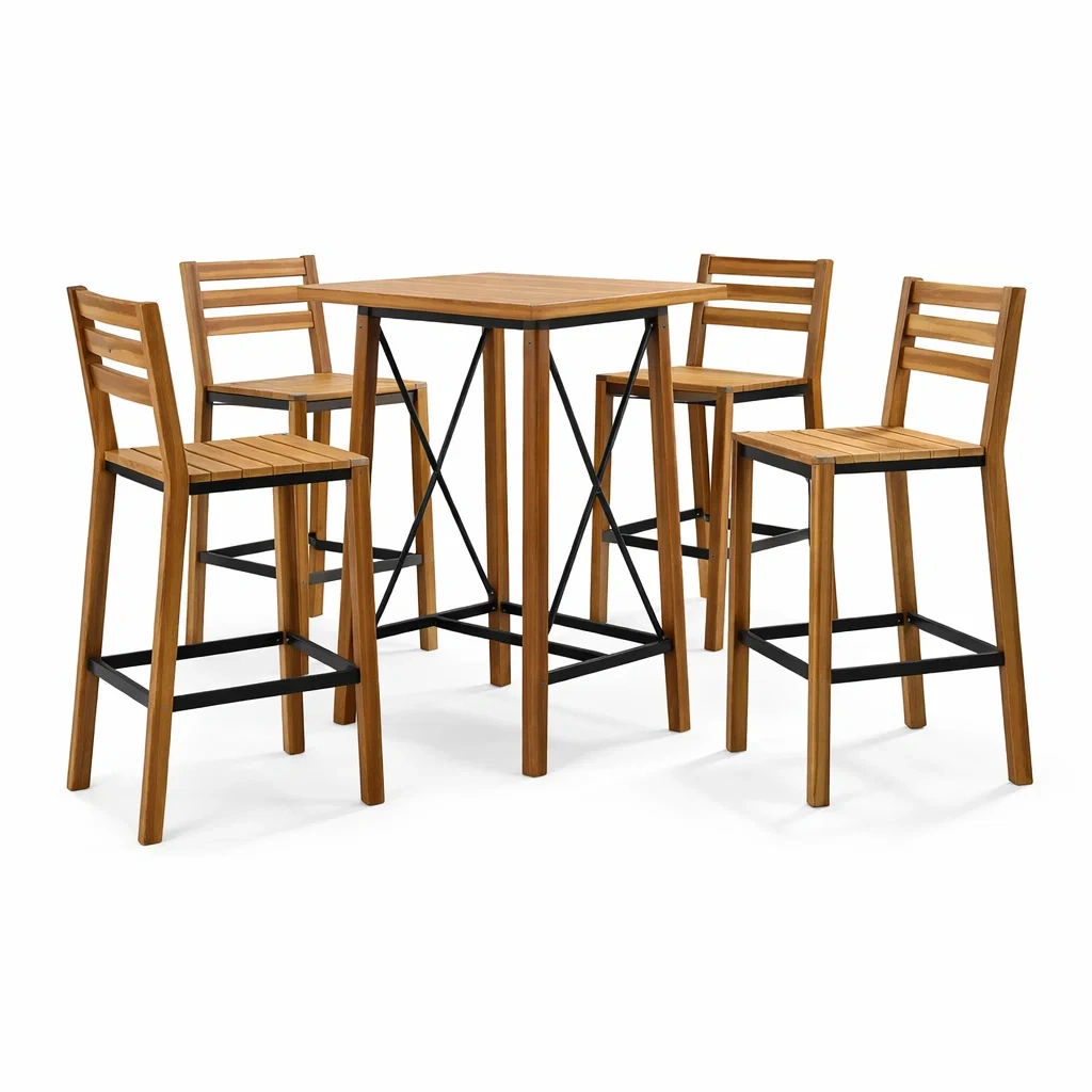 Ensemble de bar en bois d'acacia et métal avec table et 4 chaises