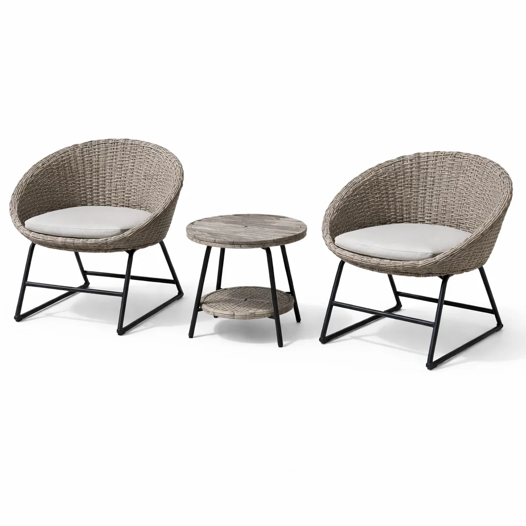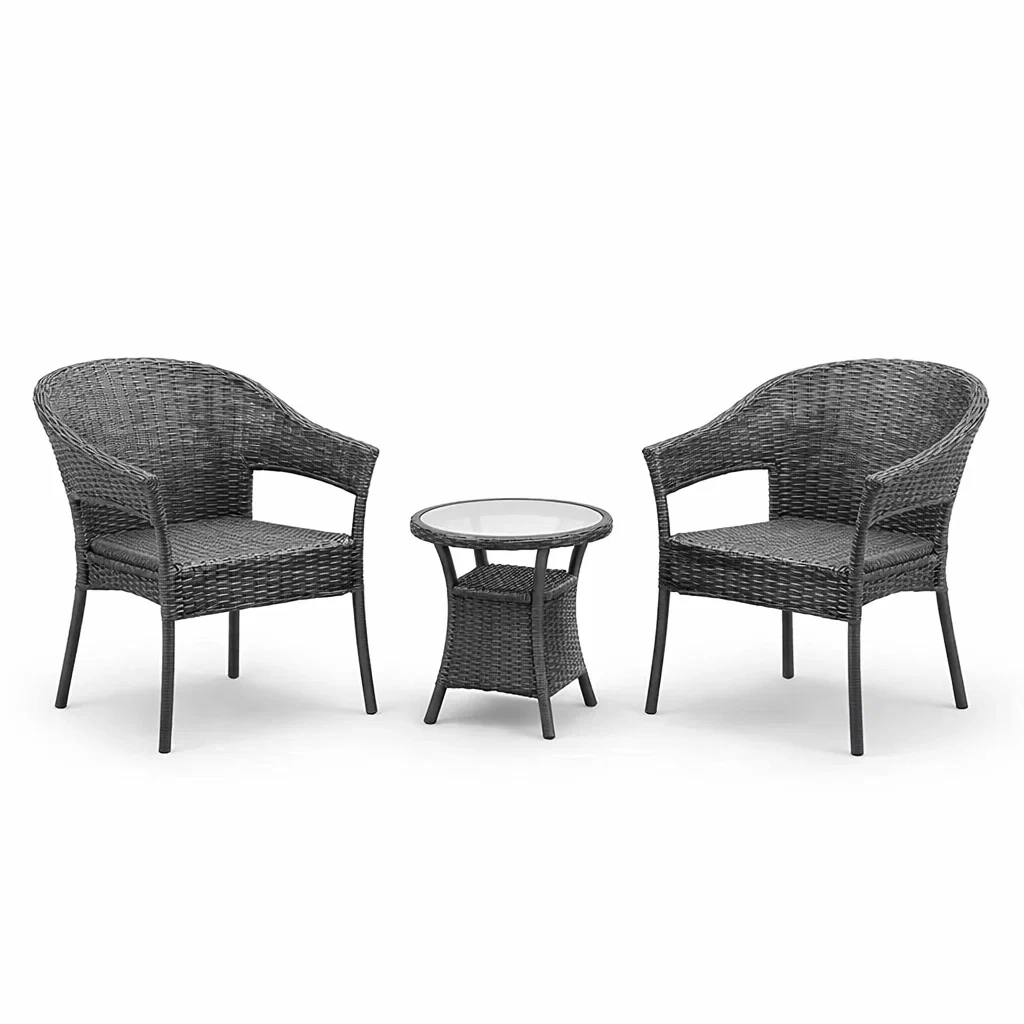 Ensemble de détente mobilier d'extérieur trois pièces en rotin et métal