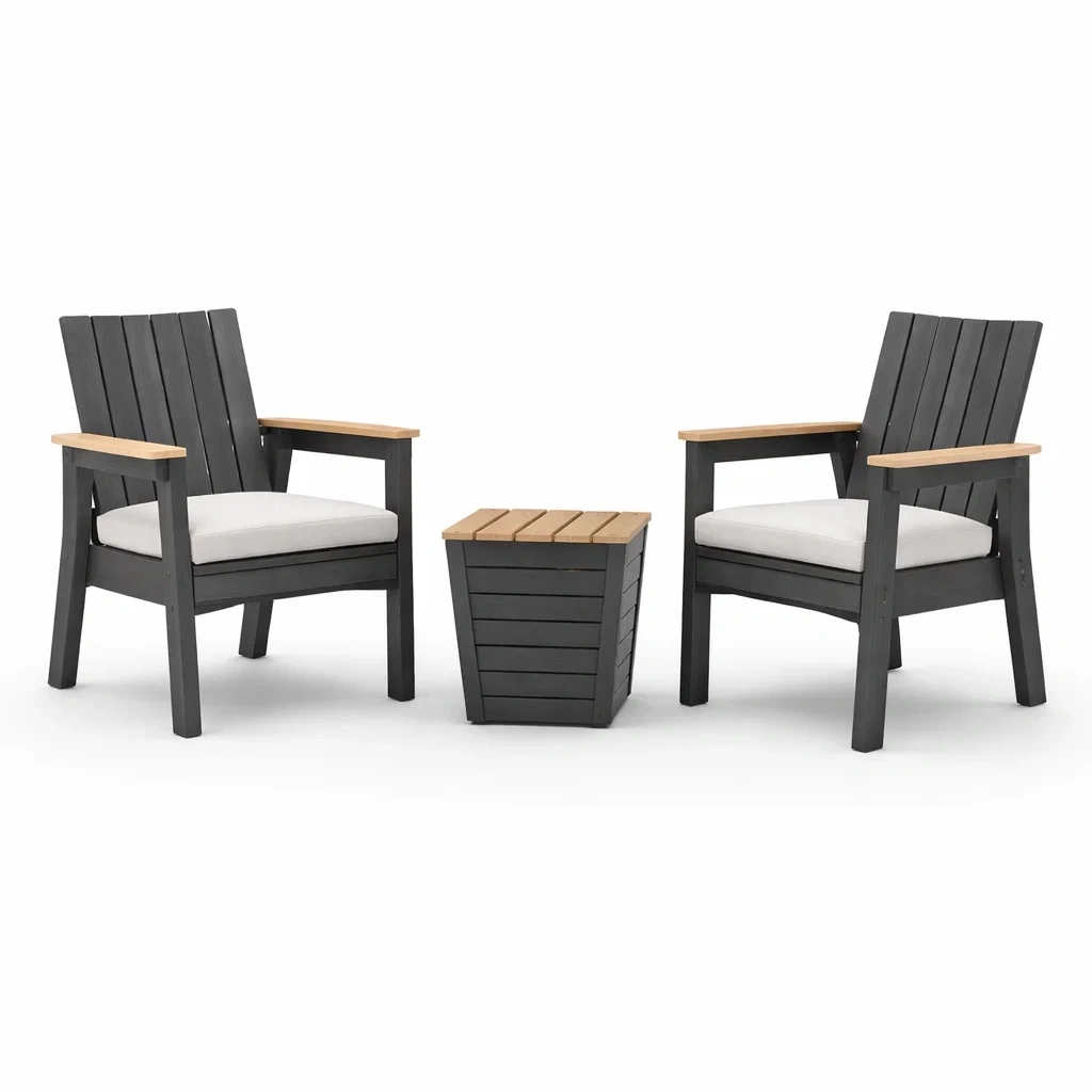 Ensemble de détente jardin en bois et tissu beige avec table noire