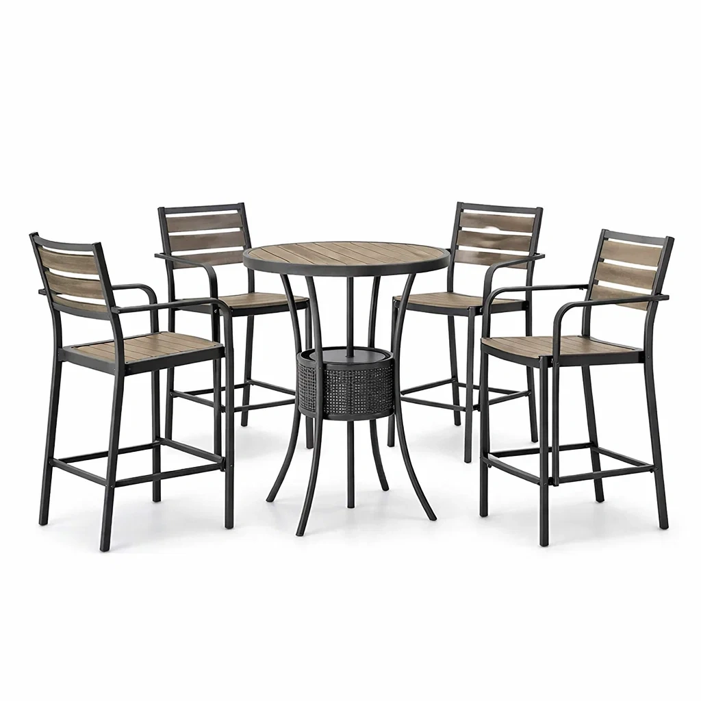 Ensemble de bar extérieur en métal et bois composite avec 4 chaises